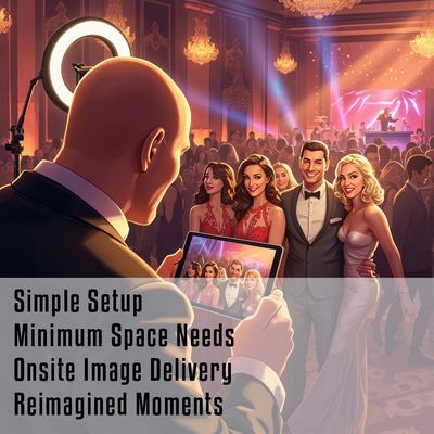 We operate with a minimal footprint and can even shift into roaming mode when space is tight. But don’t let the small setup fool you — once attendees start sharing their Usie Images, word spreads fast. Guests will seek us out, and lines will form no matter where we’re placed.